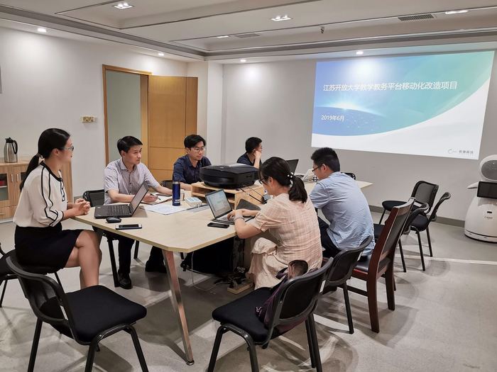 6月28日下午,江苏开放大学学习平台启动会在图书馆七楼会议室召开。项目承建单位项目经理、北京文华在线教育科技有限公司江苏开放大学学习平台产品经理及信息化建设处科长参加了本次启动会。启动会上确定了移动化学习平台的目标:在PC端学习平台的基础上进行移动化开发,实现在移动端进行在线选课、考试报名、在线缴费、成绩查询等综合性事务,双方就开发进度等做出了详细的安排。