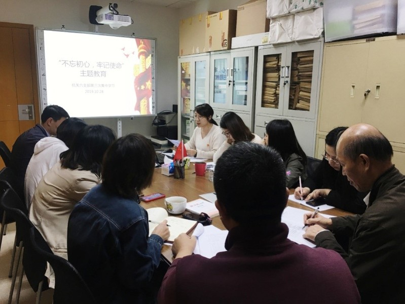 随后,机关六支部开展了“不忘初心、牢记使命”主题教育第三次集中学习研讨,与会党员一同学习了习近平总书记在国家勋章和国家荣誉称号颁奖仪式、在内蒙古考察并指导“不忘初心、牢记使命”主题教育上的重要讲话。紧接着,刘晓倩同志、戴丽娟同志、陈然同志分别就“党的政治建设”、“全面从严治党”、“理想信念”三个专题进行了重点发言,会上全体党员还一起观看了《十九大党章知识精粹》,本次集中学习大家收获颇丰。