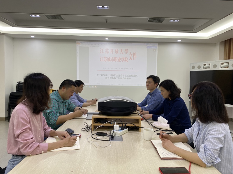 会上,首先由王小军带领全体人员认真学习了《党委书记王建明、纪委书记顾新华在江苏开放大学 2020 年度全面从严治党工作会议上的讲话》以及《第二届教代会党委书记王建明讲话、校长崔新有工作报告》。王小军传达了教代会精神,要求全体人员要紧密团结在以习近平同志为核心的党中央周围,坚持以习近平新时代中国特色社会主义思想为指导,深入贯彻党的十九大、党的十九届四中全会和全国教育大会精神,紧扣建设高水平开放大学的战略目标,紧抓基础工程建设重点,“不忘初心、牢记使命”,坚韧不拔,砥砺前行,团结奋进,开拓创新,为全面落实学校第二次党代会提出的目标任务,谱写高水平开放大学建设新篇章作出新的贡献!