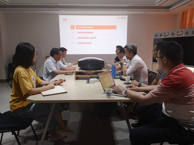会上,钱琦处长首先介绍了江苏开放大学的总体概况,目前的办学主体、教学模式以及未来10年学校的发展预期。未来在新校区,加快信息化建设,构建学历教育与非学历教育并存,完成学校实体空间和虚拟空间的建设。随后,阿里云华东大区行业资深架构师常二鹏详细介绍了阿里云近些年来在教育行业的发展以及取得的成绩,就江苏开放大学的新校区的信息化建设作了详细介绍。在介绍过程中,钱琦处长和阿里云架构师针对顶层设计中的一些设计和方案进行激烈的讨论,包括信息安全问题、人脸识别、边缘计算能力的概念及应用等,并就边缘计算能力问题讨论了在考务系统中人脸识别的应用等。最后常二鹏介绍了阿里巴巴集团的智慧校园案例。本次调研会为后续新校区信息化建设方案的设计和选择打下了坚实基础。