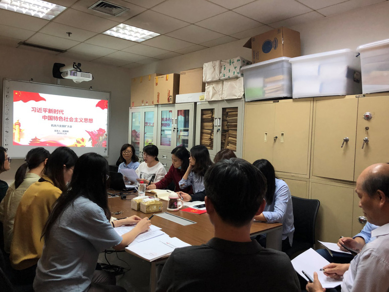 会上,戴丽娟首先通报了纪委转发的几起警示案例,传达了学校印发的《关于做好2019-2023年党员教育培训工作的通知》精神。接着,戴丽娟从习近平新时代中国特色社会主义思想的时代背景、思想内核、思想内容、基本方略以及现实意义五个方面做重点发言。随后,王小军结合习近平新时代中国特色社会主义思想,从高等教育发展、立德树人、青年人成长、意识形态等角度做学习交流;许文静则从学习方法着手,谈个人关于习近平新时代中国特色社会主义思想的学习方法,以及如何将新思想应用到工作实际中的经历。