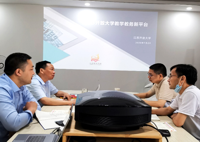 7月20日上午,广东开放大学教务处长张尚先一行2人对我校新版教学教务平台建设使用情况进行了专题调研。本次调研活动教务处处长钱琦、信息化建设处总工程师王小军,信息化建设处部分同志参加了交流。