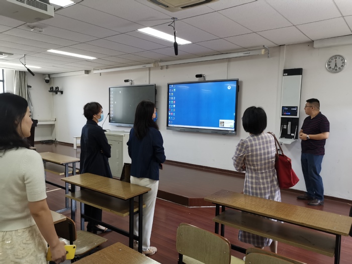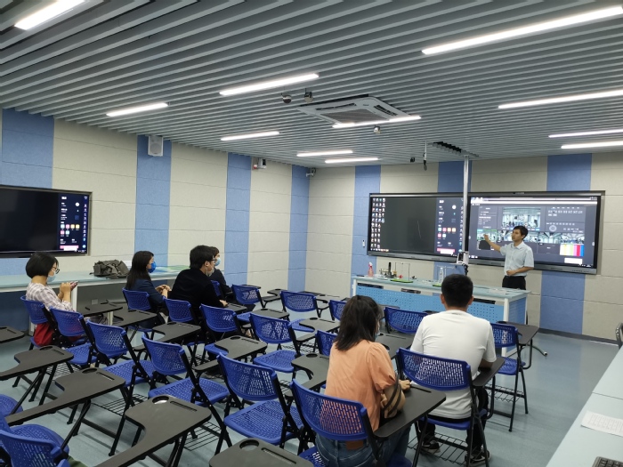 为了更好地展示信息技术与教育教学深度融合,南京大学相关人员在其物理实验智慧教室与我校人员进行了师生互动演示。