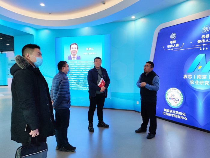 12月21日上午,信息化建设处总工程师王小军、社会教育处副处长吴杰、公共管理学院赵建浩老师等一行前往农芯(南京)智慧农业研究院(以下简称农芯智慧农研院)就浦口区数字乡村合作开展合作交流。农芯智慧农研院吴文彪院长等相关人员进行了热情接待。