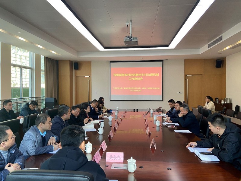 为了积极发挥我校在服务地方经济发展、促进乡村振兴方面的优势,在浦口区成为首批国家数字乡村试点的背景下,聚焦第四轮省农村改革试验任务“探索新型农村社区数字治理机制”, 2022年3月8日上午,我校积极对接浦口区农业农村局,组织开展工作座谈会。浦口区农业农村局科技教育科科长杨基楼、农芯(南京)智慧农业研究院副院长吴文彪、江苏开放大学教务处处长钱琦、科技处处长兼建筑工程学院院长侯新宇、宣传部部长兼马克思主义学院院长季海菊、信息化建设处总工程师王小军、社会教育处副处长吴杰、环境科学学院院长干方群、信息工程学院副院长黄黎、商学院副院长朱长春、公共管理学院副院长汪洋等参加会议。