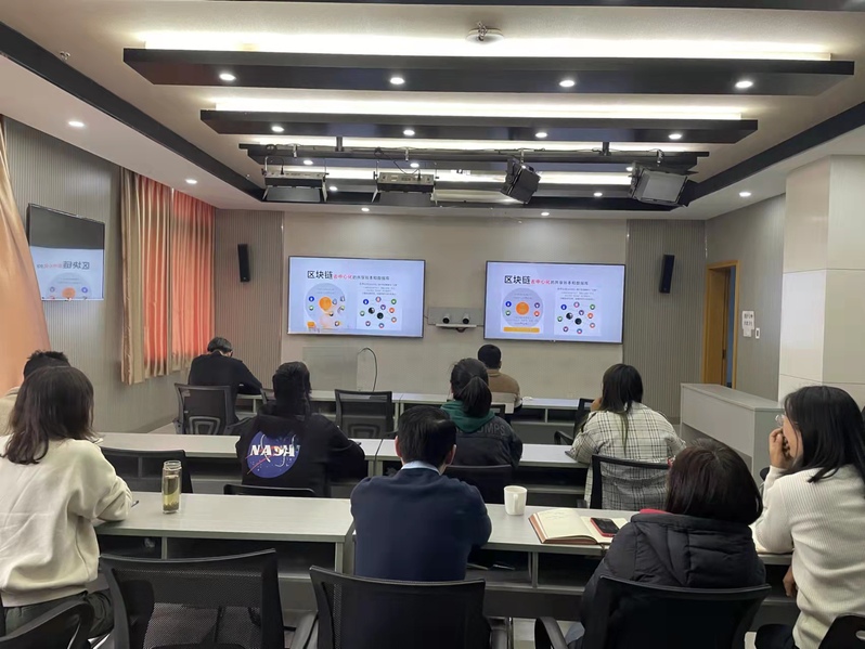 郝喆首先带领大家学习了关于印发《教育部教育管理信息中心2022年工作要点》的通知。接着她以“区块链技术应用初探”为主题进行了分享,分别对区块链定义及技术特点;区块链技术在各个领域的应用模式及实例;区块链在教育领域中的应用实例进行了介绍。