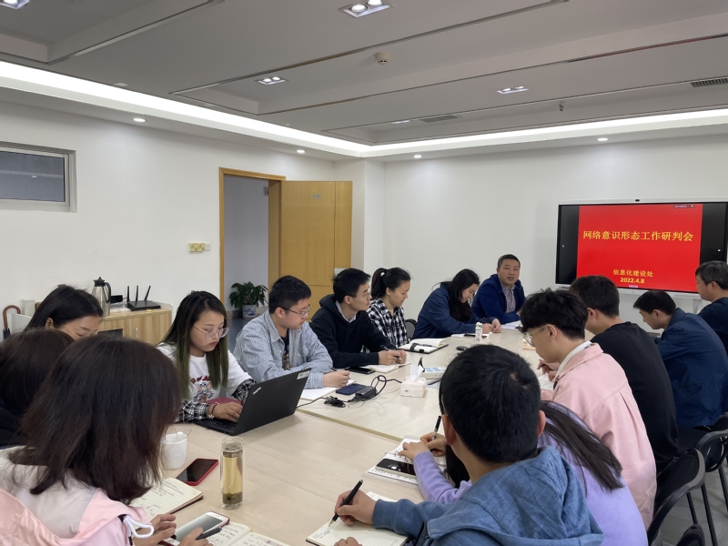 为加强和改进我校网络意识形态工作,4月8日上午,信息化建设处在定淮门校区图书馆703会议室召开网络意识形态工作研判会,王小军总工师主持会议,信息化全体成员参加会议。
