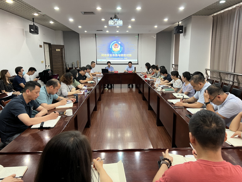 为深入贯彻落实习近平总书记关于国家网络安全的重要指示精神,全面落实教育部党委(党组)网络安全责任制,进一步普及网络安全知识,提高教职工的网络安全意识和信息化素养, 7月6日下午,我校信息化建设处在定淮门校区行政楼2楼第四会议室开展了网络安全专题培训,此次培训采用线上和线下直播相结合方式,特邀南京市公安局网安支队教导员宋璐莹为讲师,耿焕同副校长主持会议,各部门网络安全工作负责人、网络信息安全员约50人参加线下会议。