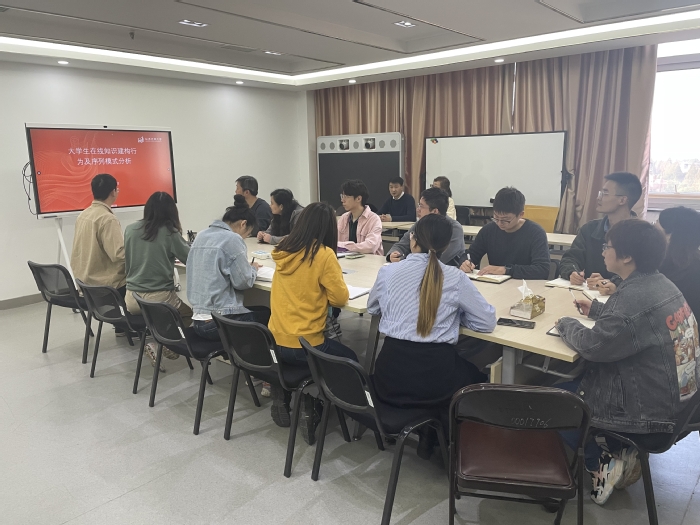 冯豹同学带领大家学习了《大学生在线知识建构行为及序列模式分析》,以背景,概念,改进的算法,求解答算法,实际应用等等进行了介绍。分享中,对其中的函数及具体的求解步骤进行了演示与介绍,最后完成了技术分享。