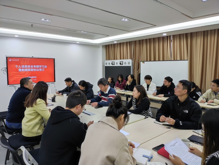为深化依法治校理念,进一步提升职工法治思维和法治能力,信息化建设处于11月22日下午召开个人信息安全专题学习会并进行数据保密协议的签订。